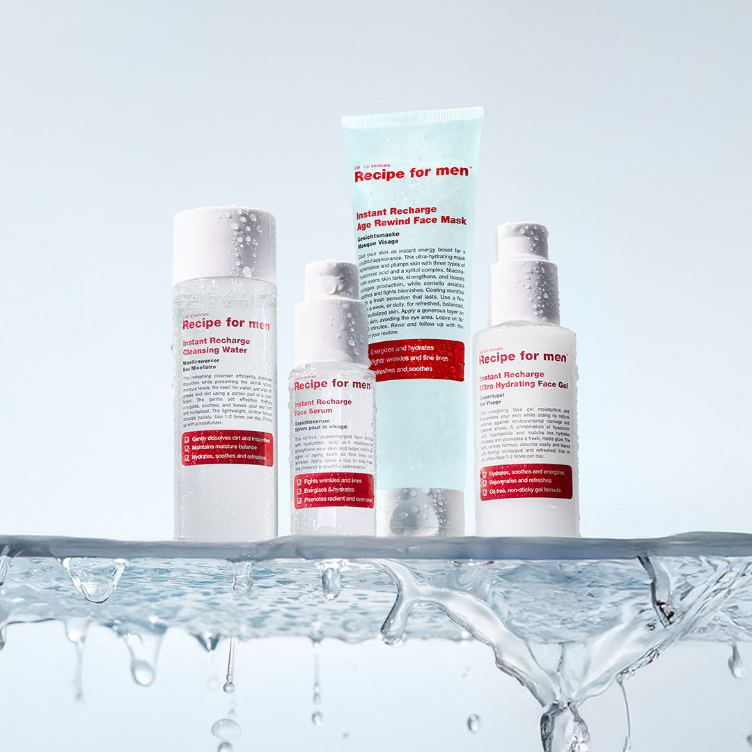 Instant Recharge Cleansing Water – Cleanses without drying. Removes dirt and impurities in seconds.